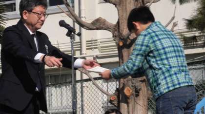 今日は今年度最後の全校朝会でした。とても温かくて、気持ちのよい朝でした。