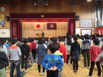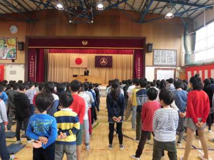 3月22日(木)平成29年度の修了式がありました。1年生から6年生の全校児童が体育館に集まり、式に参加しました。児童の立つ姿や表情は、たくましさが感じられました。修了式では、代表児童が校長先生から修了証をいただき、1年生が児童代表の言葉を言いました。