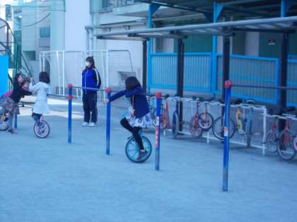 4時から外遊びを始めました。ボール遊びや一輪車など