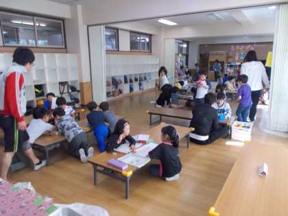 2,3年生が5時間授業の後、ボップ室にやってきて