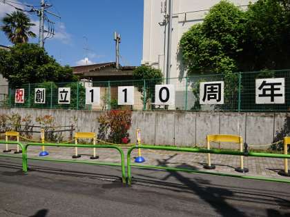 110周年記念集会を2日後に控えた4月19日、正門横のフェンスに、写真にあるような大きなパネルを設置しました。