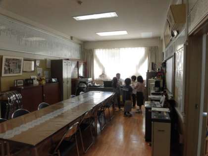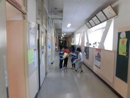 今日は2年生が1年生のために学校案内をしてくれました。2年生は、1年生にとって学校のことをよく知っている大先輩です。2年生は、何の教室なのか説明をしてくれて、その後一緒に遊んでくれました。優しい2年生と仲良くなれて、1年生は嬉しそうでした。1年生は、もっともっと三宿小学校のことを知りたいと思えたようです。1年生にとっては、あまり行ったことがない教室がまだまだたくさんあります。これからも、1年生の毎日の学校たんけんは続きます。(1年担任)