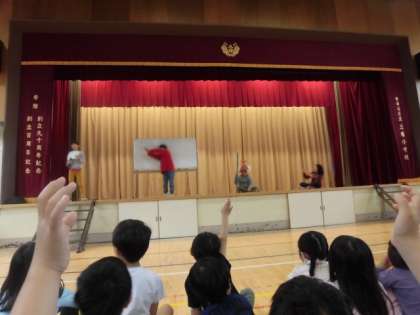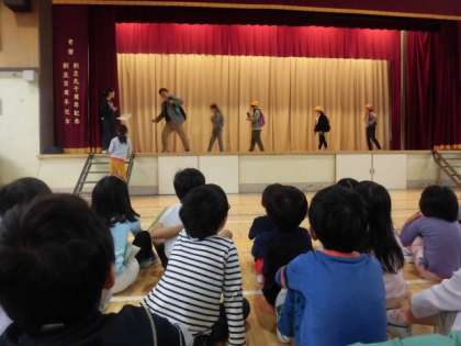 上の写真は、4月23日(月)に行われた児童集会の様子です。「まちがい探しゲーム」をしました。今年度初めての児童集会でしたが、集会委員が張り切って計画を立て、楽しい集会となりました。遠足やこいのぼりなど、季節に合った場面を考えて、演じていました。