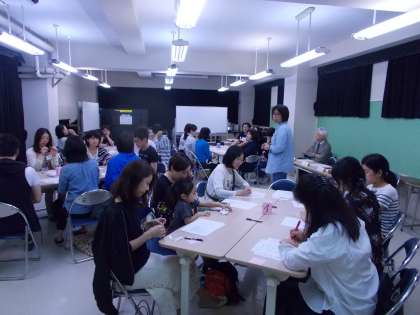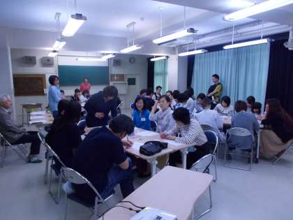 池尻児童館館長、局長、児童指導から話をし、指導員からは生活についてと遊びについての話をしました。その後各テーブルごとにお子さんのよいところを中心に話し合いを行いました。
