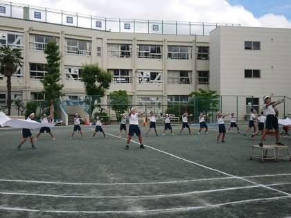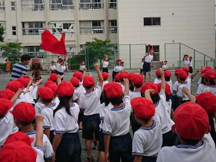 赤組も、白組も、応援団長のリードによって元気に応援の練習をしていました。