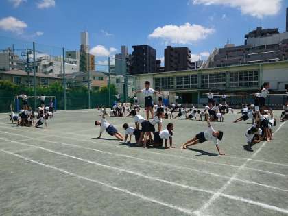 お昼前に校庭で組体操の練習をしていた5、6年生には強い日差しが照りつけ、眩しいほどでした。