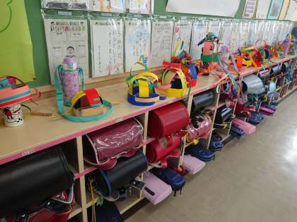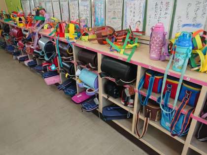2年生が図工の時間に作っていたかんむりが完成し、それぞれの教室に飾ってありました。