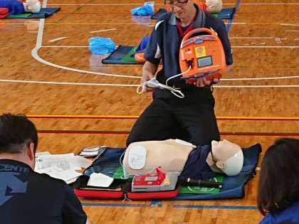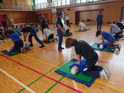水泳指導の時期を控えた6月1日の午後、池尻小学校の体育館を会場にして、三宿小、池尻小、中里小の3校合同で、全教員対象の救急救命講習会が行われました。