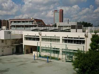 窓の外には校舎、そしてその後方には三軒茶屋のキャロットタワーが見えています。