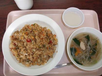 本日の給食は、ガパオライス・ビーフンスープ・ホワイトゼリー・牛乳です。