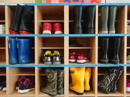 子供たちの靴箱の中には、カラフルな長靴がしまってありました。