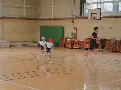 運動会と違って体育の授業は間近でゆったり見られるのでお勧めです。今日は曇り空で暑さもさほど感じません。