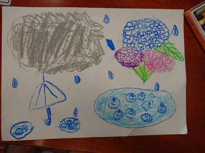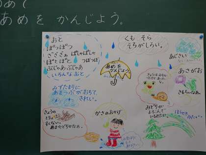 こんな時期に、1年生は「雨」を題材にした生活科の勉強をしていました。