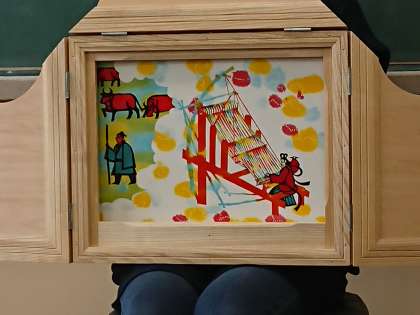 朝の読み聞かせでは、紙芝居形式の大きな挿し絵を使って、「たなばたものがたり 」や「こぎつねたっくんのたなばたさま」など、季節に合わせたお話を聞かせてもらいました。