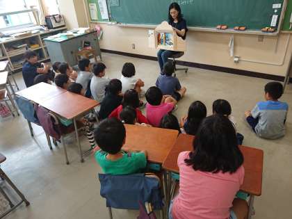 今日は保護者ボランティアによる読み聞かせの日です。1〜3年とわかば学級は朝に、4〜6年は昼休みに各学級ごとに行います。