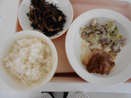 本日の給食は、ごはん・鶏肉の南蛮焼き・野菜のゆかりあえ・ひじきの煮つけ・牛乳です。