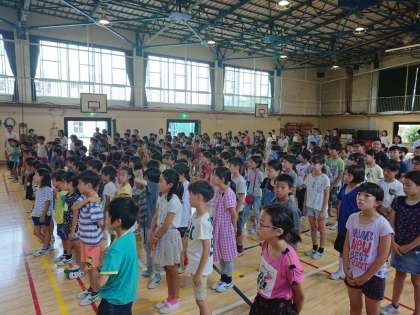 朝から全校の児童が体育館に集まり、終業式が行われました。