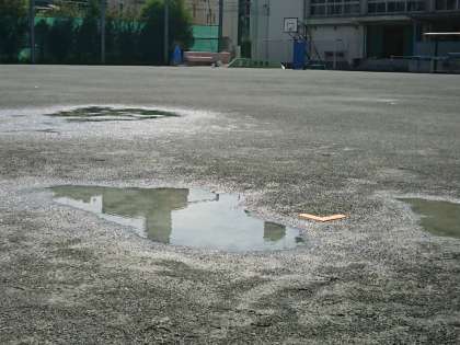 子どもたちは、新学期が始まってから2日間続けて外遊びができなかったので、今日は多少水溜まりが残っていても、校庭遊びをさせてあげる予定です。