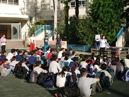 高速道路は順調で、児童はバスの中で歌を歌い、楽しく過ごしています。