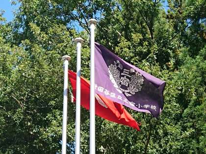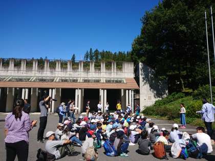 ポールに校旗を掲揚し、3日間の移動教室が始まりました。