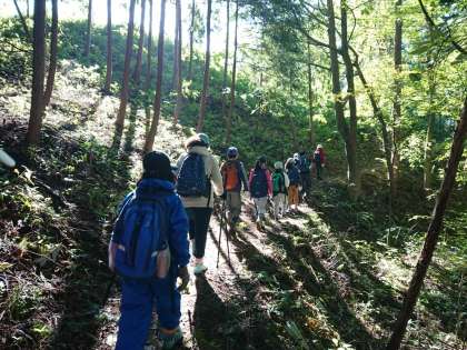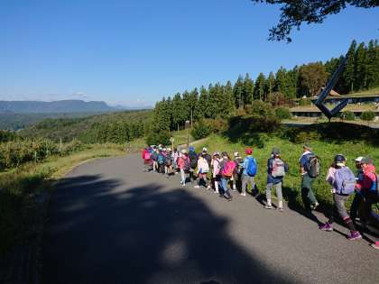 ここからは列を作って黙々と登っていきます。山登りに慣れていない子どもたちは、早くも足どりが重くなり、「つらい」「苦しい」とのつふやきが漏れてきます。