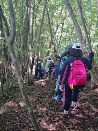山から下る道は滑りやすく、みんなゆっくり慎重に歩きました。