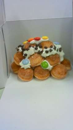 料理・手芸クラブは、お楽しみカステラケーキを作りました。缶詰めの果物やチョコレートなどでデコレーションしました。