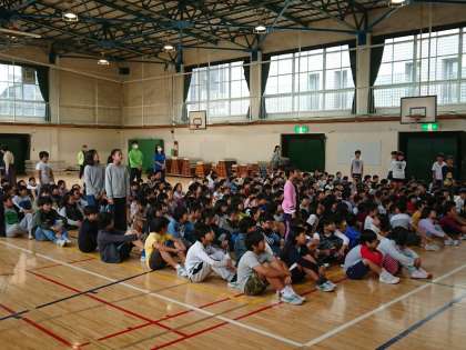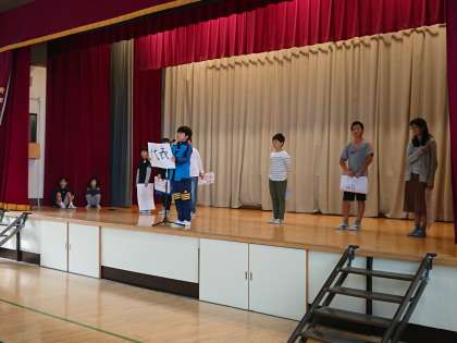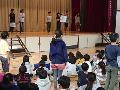それぞれの委員会の委員長さんが、舞台の上で主な活動内容を紹介しました。低学年の子どもたちにも、委員会活動のことが少し理解できたことと思います。