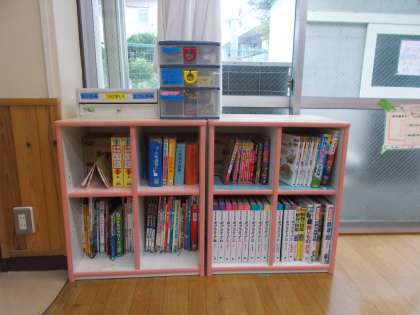新刊が入り、書架が狭くなったので 書架を塚戸幼稚園からもらってきました。