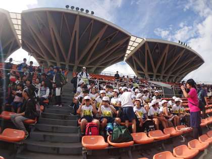 児童席はメインスタンドの前方で、とてもよい位置です。