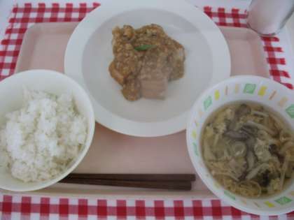 本日の給食は、ごはん・生揚げのそぼろあんかけ・きのこのお吸い物・牛乳です。