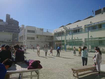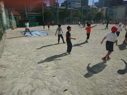 中休みにはたくさんの子どもたちが校庭に出て、大声を張り上げながら楽しそうに遊んでいます。