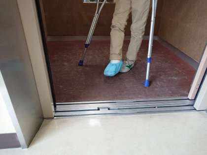 現在も怪我をして松葉杖を使っている児童が、毎日エレベーターを利用しています。