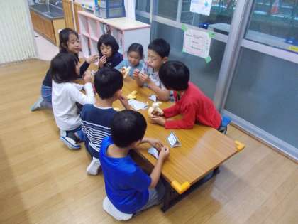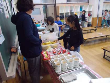 学童クラブの間食は名簿に丸を付け