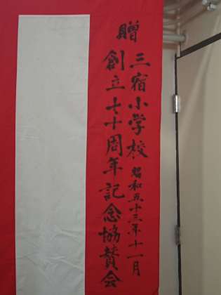 この紅白幕は、今からちょうど40年前の昭和53年11月、創立70周年を記念して贈呈されたものです。40年経った現在も大事に使われているのです。
