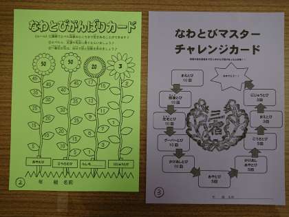 各自にはなわ跳びカードが配られ、毎日自分で記録をつけていきます。