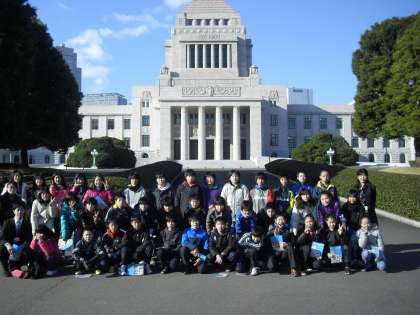 9時、いよいよ国会議事堂衆議院見学です。「当日は混雑が予想されます」と言われていましたが、三宿小学校は一番に見学することができ、比較的ゆっくり回ることができました。メインの本会議場に入ると、テレビで見る印象と違ったようで「ちっちゃい」と、口をそろえてつぶやいていました。