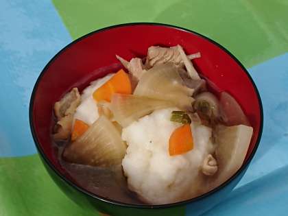 子どもたちは手を石鹸で洗い、家から持参した器におもちと汁を入れてもらい、熱々のうちに食べました。