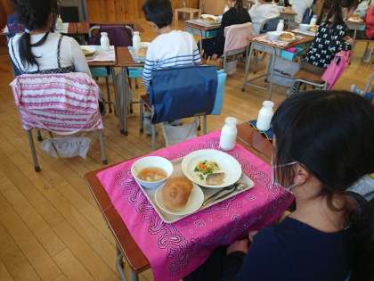先週に引き続き風邪気味の児童も多く、三宿小では現在「おひとりさま給食」を実施しています。
