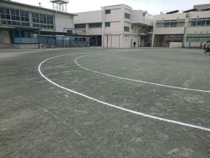 校庭には練習用のトラックのラインが引かれ、準備万端です。