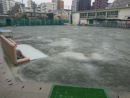 これだけ雨が降ると、たとえやんでも、1、2日間は校庭が使えなくなります。