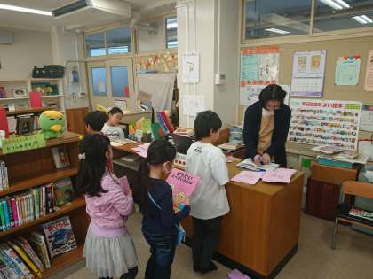 読み聞かせが終わったあとは、本の貸し出し手続きです。カウンターでの応対はすべて司書が手際よく進めていました。