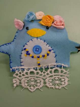 今、取り組んでいるのはフエルトを使ったマスコット作り。今日はまだ完成ではありませんが、みなかわいらしいマスコットを作っていました。