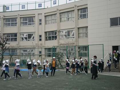 朝の避難訓練の様子