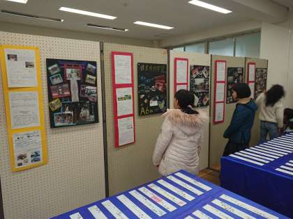 3月7日(木)の3、4時間目に、4年生は歩いて三宿中学校へ行き、「学芸発表会 展示の部」を見学してきました。