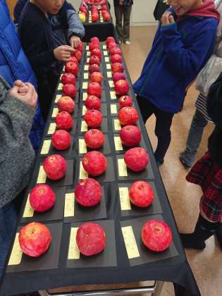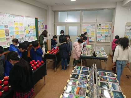 今回見学したのは、書き初め作品や沈金盆などの美術作品、ラジオや木材加工品などの技術作品、世界の国調べなどの社会科作品、学習新聞などの総合学習の作品など、多種多様なものです。