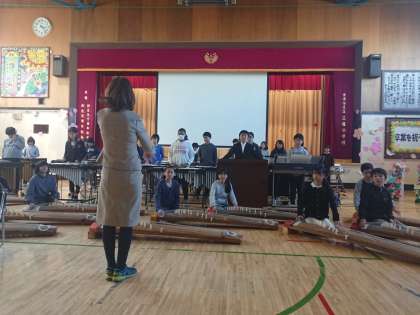 会の後半には、6年生による合奏が披露されました。曲は、「百花繚乱」。百枚の花びらが一斉に舞うイメージで演奏してくれました。