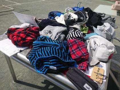 脱いだ上着はきちんとたたんで朝礼台の上に置いていました。この上着の置き方ひとつを見ても、さすが高学年だと感心させられます。(もちろん日頃からの担任たちの細やかな指導があってこそのことですが。)