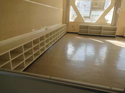 最近では、2階の生活科室の荷物を移して普通教室の作りにリニューアルしたり、汚れた防火扉や壁面にペンキを塗り直したりしています。