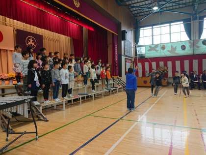 新入生の入退場時には、5、6年生による「祝典行進曲」の生演奏が行われました。